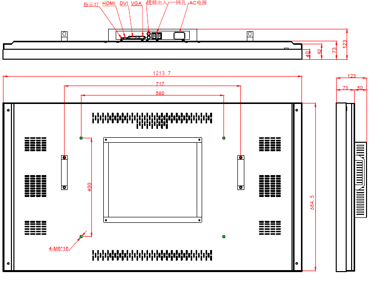 HDMI/DVI/VGA/AV/RS232/ 電源接口