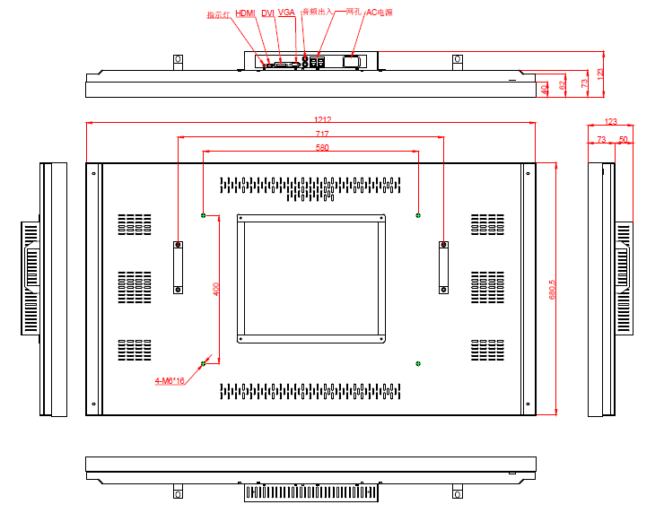 HDMI/DVI/VGA/AV/RS232/ 電源接口 |