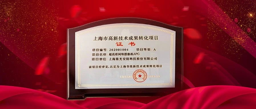 集光安防獲“上海市高新技術成果轉化項目” 認定