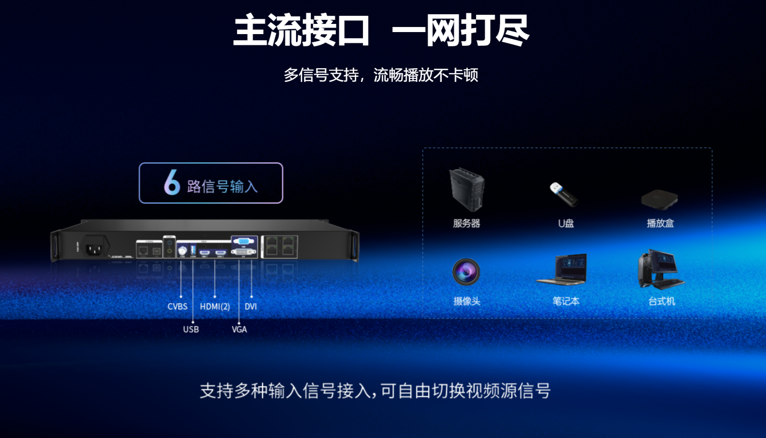 三款控製器均支持1920×1200@60Hz高清數字信號輸入,覆蓋HDMI、DVI、SDI等主流接口,滿足從4K到8K級超寬屏(píng)的顯示需求。其中,APG-KLT-X6更以6路千兆網口輸出的(de)頂(dǐng)級配置,單機可驅動8192×4096像素的巨(jù)型顯示屏,相(xiàng)當於16塊4K電視無縫拚(pīn)接,為大型場(chǎng)館、智(zhì)慧城市(shì)等場景提供無損(sǔn)畫質保障(zhàng)。