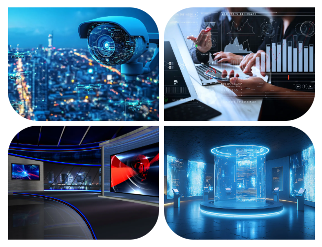 科技館(guǎn)/企業展廳打造(zào)多屏聯動、動態拚接的環繞空間,結合VR/AR交(jiāo)互(hù),讓觀眾(zhòng)身臨其境,深度傳遞品牌價值,引爆視覺營銷。
