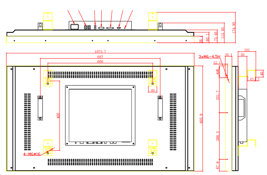 HDMI/DVI/VGA/AV/RS232/電源接(jiē)口