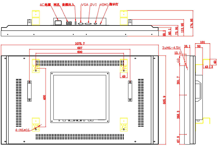 HDMI/DVI/VGA/AV/RS232/ 電源接口